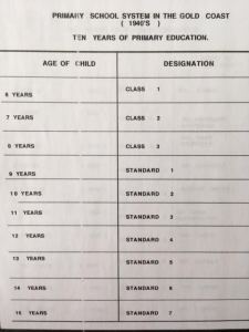 In the 1940’s, primary school education in Ghana took ten years. (Refer to Chart 1)