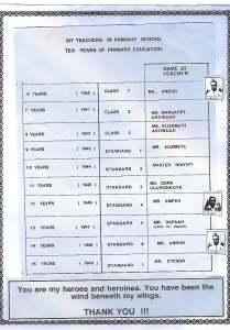 The first three years may be classified as the early childhood education period. I recollect that on the first day of school in January 1940, there were about 25 of us in Class 1. There were about twenty boys and five girls. About 20 of us knew each other as we had been playing together before we reached school-going age.