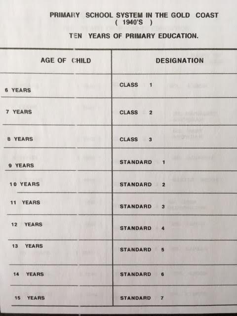 In the 1940’s, primary school education in Ghana took ten years. (Refer to Chart 1)